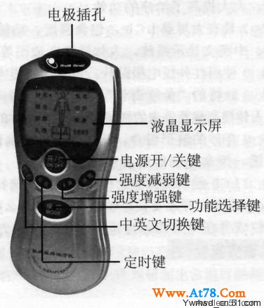 ⑵ 超大LCD液晶显示,包含强度、功能、模式、治疗、时间、中英文显示系统,人体经络穴位图等,八大功能自行设定,极易操作。