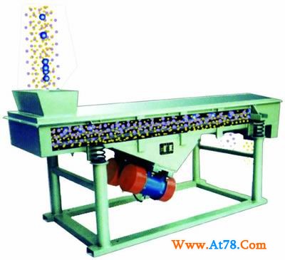 DZSF系列直线振动筛采用双振动电机驱动,当两台振动电机做同步、反缶旋转时,其偏心块所产生的激振力在平行于电机轴线的方向相互抵消,在垂直于电机轴的方向叠为一合力,因此筛机的运动轨迹为一直线。其两电机轴相对筛面有一倾角,在激振力和物料自重力的合力作用下,物料在筛面上被抛起跳跃式向前作直线运动,从而达到对物料进行筛选和分级的目的。