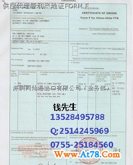专业办理中国-智利自由贸易区优惠原产地证明书FORM F