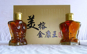 美榕金康王酒是一种低度保健酒,为皇宫御用强身壮阳酒,据传说美榕金康王酒起源于古老时代,究竟具体是商周时期还是更早?没有人能说的清楚,但是据传说一直为皇宫御用强身壮阳酒。我公司在原方基础上组织多位名老中医进行反复临床论证研究,历时数载,多次组方, 在补肾的主旨下兼顾心、肝、脾、肺诸脏器的调理滋补。蛇取其鞭与骨,牡蛎锻烧,采用纯生物卒取技术将枸杞子、芡实、覆盆子等有效成份提取出来,本酒酒基醇正,绵软悠长,气味芬芳,醇而不冽,口感非常好,而且还带功能性养生功效,在你工作疲惫不堪、生活奔波劳累时喝上一杯,即刻精神奕奕,激情高涨。在提高生活质量层面上有让你意想不到的惊喜,以酒养生,境与意会,物与心融。抗疲劳,提高免疫力,具有良好的保健作用,有效调节男性机能,迅速启动男性能量,让男性萎靡不振的现象一扫而光,是男人的佳品。在你工作疲惫不堪、生活奔波劳累时喝上一杯,即刻精神奕奕,激情高涨。在提高生活质量层面上有让你意想不到的惊喜,高兴时离不开酒,伤心时离不开酒,朋友聚会离不开酒,孝敬父母同样离不开酒。好男人离不开酒,好男人更离不开好酒。尤其是对于酒来说,好的口感至关重要。更为关键的一点,它还让人喝出品味、喝出健康、喝出快乐。醇香一杯美榕金康王酒,天下男人尽如斯。