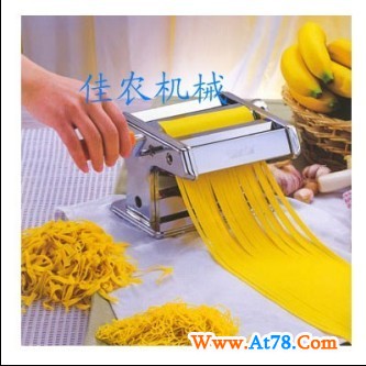 家用面条机 广东面条机,小型面条机广州佳农厂家用手动面条机,货号:HP-150Z(整体机),材料:钢.钢电镀铬/镍,不锈钢等,符合食品安全要求,产品尺寸:150MM(刀辊宽度),不需用电,手摇操作,利用面辊7(9)档调节,可压制出0.3--3MM厚度的面皮,使用机器前端二种宽度面刀(6MM和3MM),可压制出二种宽窄的面条,压面切面一机完成,美观实用,易于操作,所有机器和部件都经过严格检测,方才出厂,标准配制,每箱6台,此款是最常出的一款,已出口到许多国家和地区,受到普遍欢迎,如有意向,恭候垂询.可压制粗细面条、饺子皮、包子皮及馄饨等多样面食,形状整齐,厚薄匀称,是现代家庭好帮手。厚度可以调节0.3-3mm,该机操作方便,能压制宽窄两种面条及馄饨皮、面叶,用该机压制的面条同手擀一样光滑、柔软、可口好吃。1.面皮厚度档数8档 ,机上设有粗、细面条刀辊,该机除能压制粗、细面条以外,还可压制面皮、饺子皮、包 子皮、馄饨皮等多样面食,形状整齐,厚薄匀称.2.手摇动机,不用电,安全经济,该机一般家庭人员即可操作,非常安全可靠,很适于没电、少电和经常断电的城乡家庭、野外作业人员及小餐馆使用. 3.速度快,易操作,节省时间,该机设计能力每小时可压制面条五公斤。4.坚固耐用。该机选进口材料,全金属镀铬制造,结构紧凑,造型新颖,美观大方,光洁卫生。使用说明:1.将压面机放在桌子边或面案边缘,用卡子卡牢,面粉加水(5:2),水中可适当放些盐碱,如若做蛋面时再将蛋放入面中,在盆内一起调和.2.将调和好的面团切成片状(10毫米左右),撒些干面粉,放入压面辊内,用手柄摇动.3.要按顺序使用面皮档次旋钮,压制面条使用1-7档,压制馄饨皮使用1-8档.4.机上设有粗,细面条刀,可任意选用!规格210*190*140mm