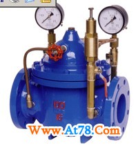 200X减压稳压阀工作原理 当阀门从进口端给水时,水流过针阀进入主阀控制室,出口压力通过导管作用到导阀上。当出口压力高于导阀弹簧设定值时,导阀关闭。控制室停止排水,此时主阀控制室内压力升高并关闭主阀,出口压力不再升高。 |