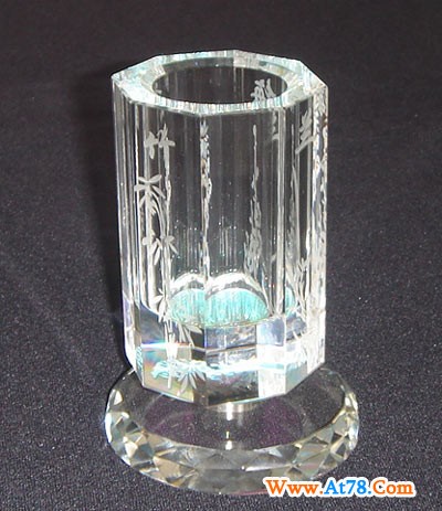 广东水晶笔筒制作公司、合作座谈会纪念品、办公水晶笔筒摆件定做