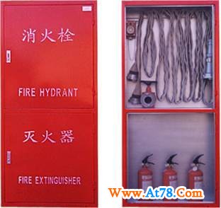 箱内包括SN65室内消火栓一个、JPS0.8-19消防软管卷盘一套、启泵按钮一 只、2kgABC干粉灭火器三具 |