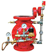 ZSFM隔膜式雨淋阀是由隔膜阀体、手动快开阀,电磁阀.压力表.警铃管试验警铃球阀,过滤器,压力开关,水力警铃,放水阀、防复位锁止装置等组成,与供水管网火灾探测器,火灾报警器及洒水喷头分别组成下列系统。