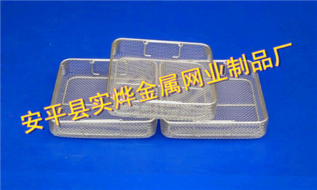 加工工艺:不锈钢轧花网、不锈钢电焊网、不锈钢编织网、不锈钢冲孔网、氩弧焊接等。不锈钢消毒筐表面采用电解,抛光等处理方法。