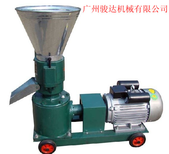 广州骏达机械饲料颗粒机是加工秸秆饲料、粮食饲料、秸秆粮食混合的专用设备,低噪音、低故障、低能耗,连续生产不卡机。该系列机器借鉴国内外颗粒成型机械的先进技术,关键部件压辊、模板采用优质合金钢,利用德国真空炉热处理制造工艺处理,使用寿命长延长5—7倍,机器通过连轴器与电机连接。工作时将粉状饲料加入料斗,直接压制颗粒,原料干进干出,在造粒过程中不需要加水,无需烘干,经自然升温达75度左右,可使淀粉糊化,颗粒内部熟化深透,表面光滑,硬度高,可长期储存,颗粒坚硬、光滑,成型率100%,在压辊挤压下从模孔中排出,制成的颗粒经甩料盘送出机外,通过切口可调颗粒长短。淀粉糊化蛋白质凝固变性,提高了营养价值和消化吸收能力,保证饲料质量并可长期储存,适于加工猪、牛、羊、鸡、兔、鱼等禽畜水产用饲料颗粒,是养殖户专业户及中小型饲料加工厂降低养殖成本,提高经济效益的理想设备,首选机型。是国内先进的干进干出的饲料颗粒机械。
