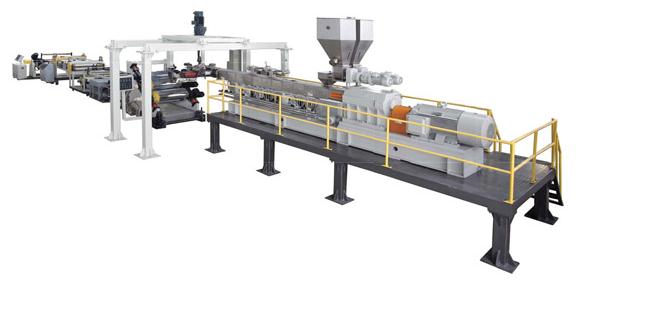 免干燥新型PET双排气挤出生产线 (不需要结晶除湿干燥系统),是金韦尔公司最新研制的高质量PET片材机组,其生产工艺简单, 能耗低、大大降低生产成本。