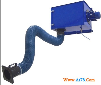 通过风机引力作用,焊烟废气经万向吸尘罩吸入设备进风口,设备进风口处设有阻火器,火花经阻火器被阻留,烟尘气体进入沉降室,利用重力与上行气流,首先将粗粒尘直接降至灰斗,微粒烟尘被滤芯捕集在外表面,洁净气体经滤芯过滤净化后经出风口达标排出