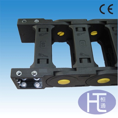 ◆拖链单元链节由左右链板和上下盖板组成,拖链每节部能打开.装拆方便.不必穿线,打开盖板后即可把电缆、油管、气管等放入拖链内。http://www.ht218.com
