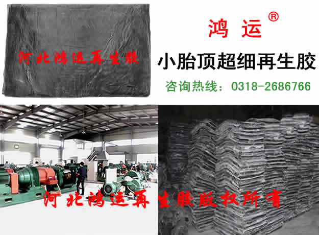 鸿运小胎顶超细再生胶无需塑炼,直接用于电线电缆外皮、球胆、内胎、防水卷材、胶管、胶条、密封件、涂布胶等表面光滑的橡胶制品的生中,可降低原料成本、省工省电。