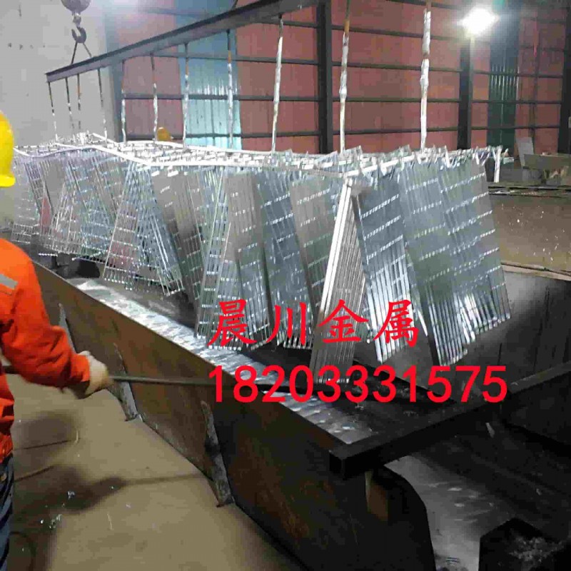 如果钢格栅板材的硅含量较高,可加入锌镍合金降低上锌量。也可加入助镀剂添加剂来使镀锌层变得漂亮。在钢格板热镀锌过程中,如果要使钢格栅板表面光亮、锌层薄,这跟各道工序都有很大关系,酸洗不到位,助镀液配方不对,锌温高低,人工操作,行车的起吊速度,都有很大关系的.下面我简单地分析一下。