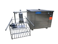 避震器压壳涡轮超声波雷士清洗机,清洗的原理是LSA超声波发生器产生的高频振荡电信号、通过换能器转换成高频的机械振动,传播到清洗液中,每秒2万次以上的振动,从而将微米级的污垢震落,对物体实行高效的清洗,达到清洁的目的。