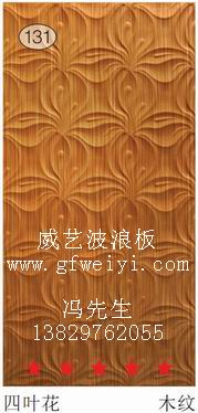 3产品花纹:威禾有300多种花纹图案供客户选择(详见本企业:新款波浪板、立体波浪板、家具雕刻板、木质波浪板),也可根据客户的样品及图片生产其它花纹图案。
