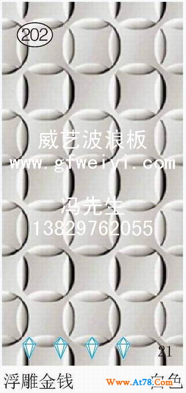 3产品花纹:威禾有300多种花纹图案供客户选择(详见本企业:新款波浪板、立体波浪板、家具雕刻板、木质波浪板),也可根据客户的样品及图片生产其它花纹图案。