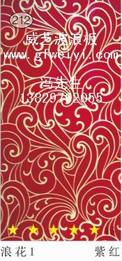 3产品花纹:威禾有300多种花纹图案供客户选择(详见本企业:新款波浪板、立体波浪板、家具雕刻板、木质波浪板),也可根据客户的样品及图片生产其它花纹图案。