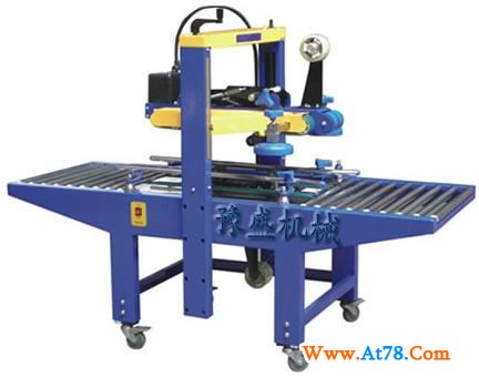 2、该款封箱机采用即贴胶带封纸箱封口,经济快速、容易调整,可一次完成上、下封箱动作,采用印字胶带,更可提高产品印象。