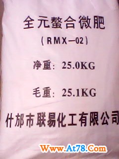 螯合微量元素 RMX-02 质量指标:铁-2.5%、锌-1%、铜-1.5%、锰-1%、镁-4.5%、硼-1%、钼-0.02% 。PH(1%水溶液)5.5~7.5 、颜色-绿色、常温溶解度320g/L。 产品特点:含有的铁、锌、铜、锰均为EDTA螯合态,总微量养分为11.52%。用于防治农业、园艺和观赏植物的多种微量元素缺乏症。为水培溶液、液体肥料和无土栽培提供最有效的微量元素。