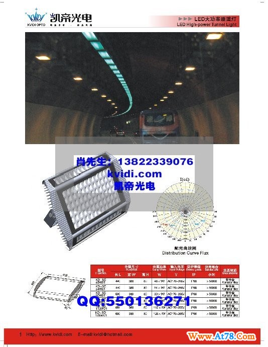 3.采用最先进的二次配光技术,最佳光学分配,蝙蝠形配光曲线或矩形光斑,灯具输出光率可达90%以上;