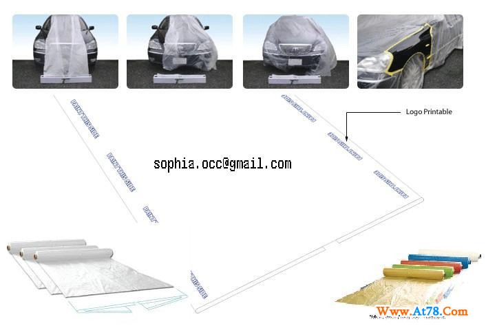 。展开后自粘于汽车表面 。防护多种溶剂 。标明喷漆面 。全部静电及电晕处理,强力吸附油漆 。多层折叠 。商标印刷