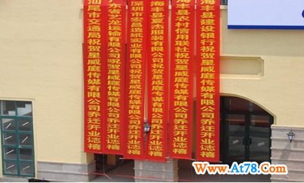 另一种为专用条幅布喷绘制作:用此种方式制作的条幅优点是可以印刷任意颜色的彩色图片文字,防水、户外阳光暴晒两年以上不褪色。广泛应用于要求有较高要求的场所,如商场的产品宣传等。